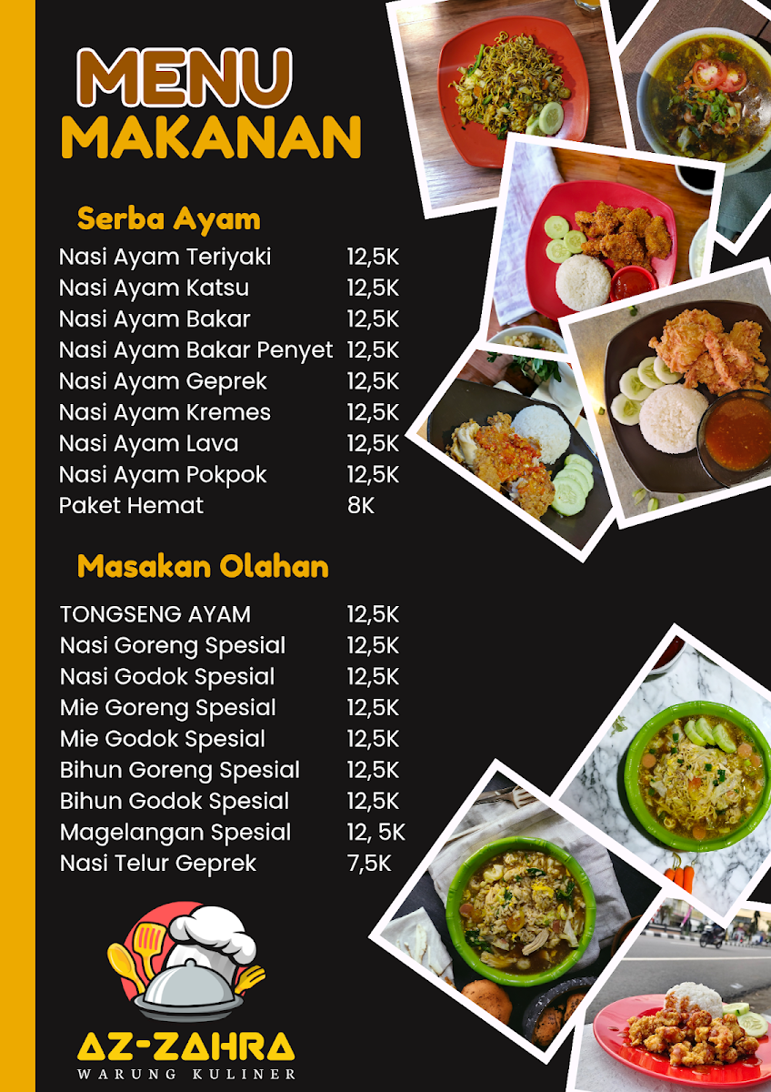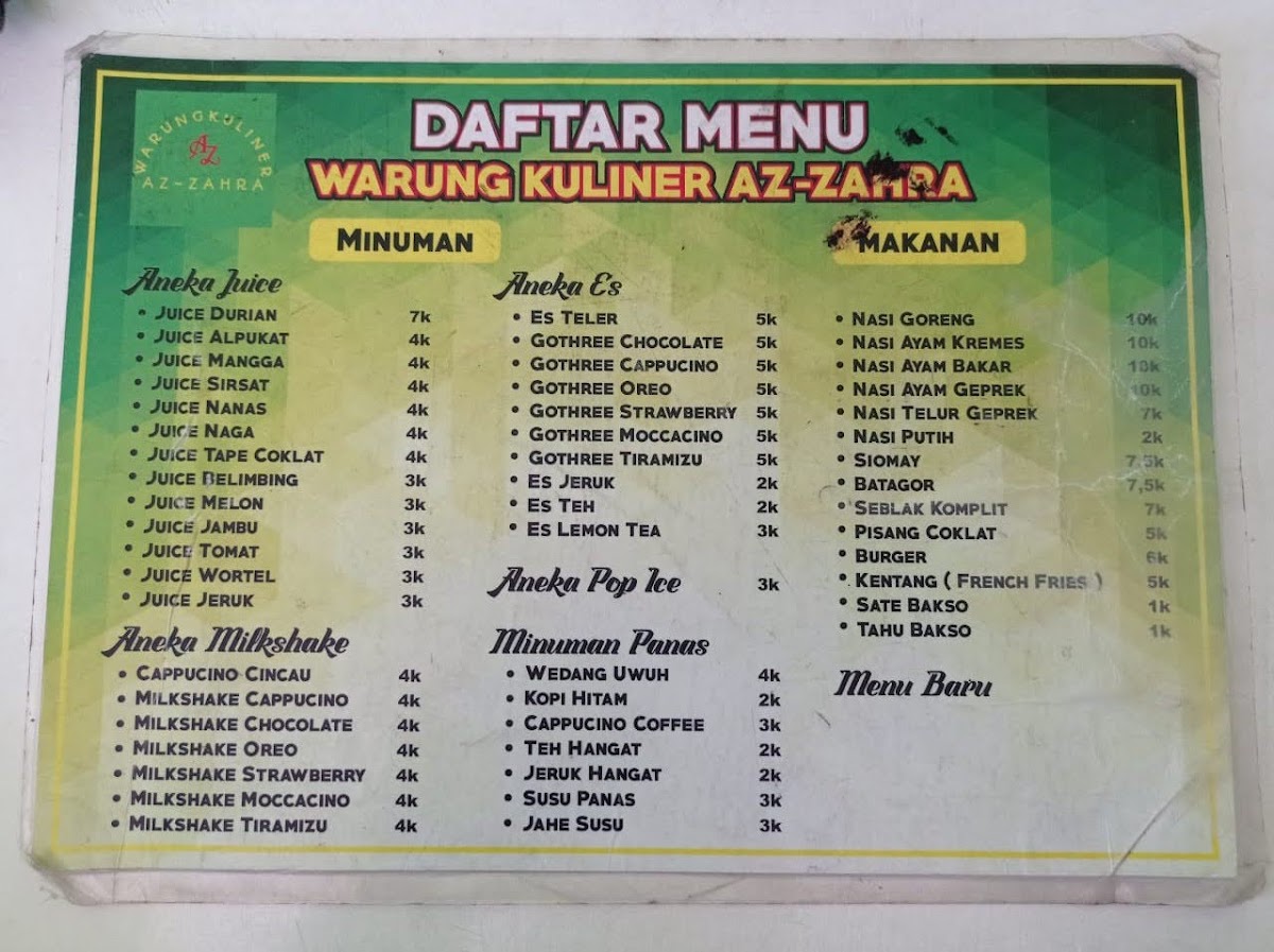 Warung Kuliner Az Zahra in Jetak, Mungkid, is a beloved local eatery known for its generous portions and pocket-friendly prices. This humble warung highlights classic Indonesian comfort food with standout dishes like nasi goreng, enriched with toppings including tender chicken, eggs, bakso, and sausages. Priced around 12,000 IDR, the nasi goreng delivers a perfect blend of savory spices that keeps loyal customers coming back since school days.